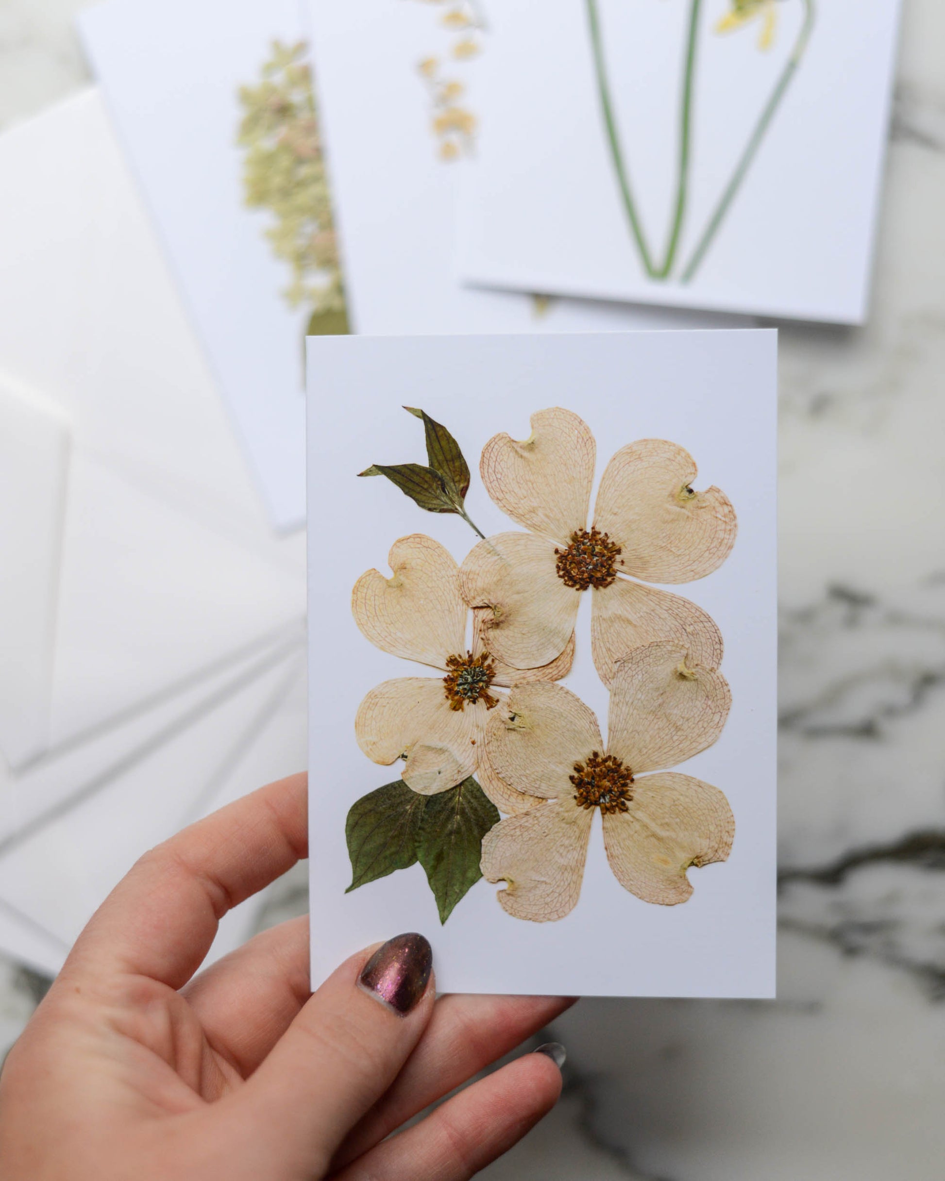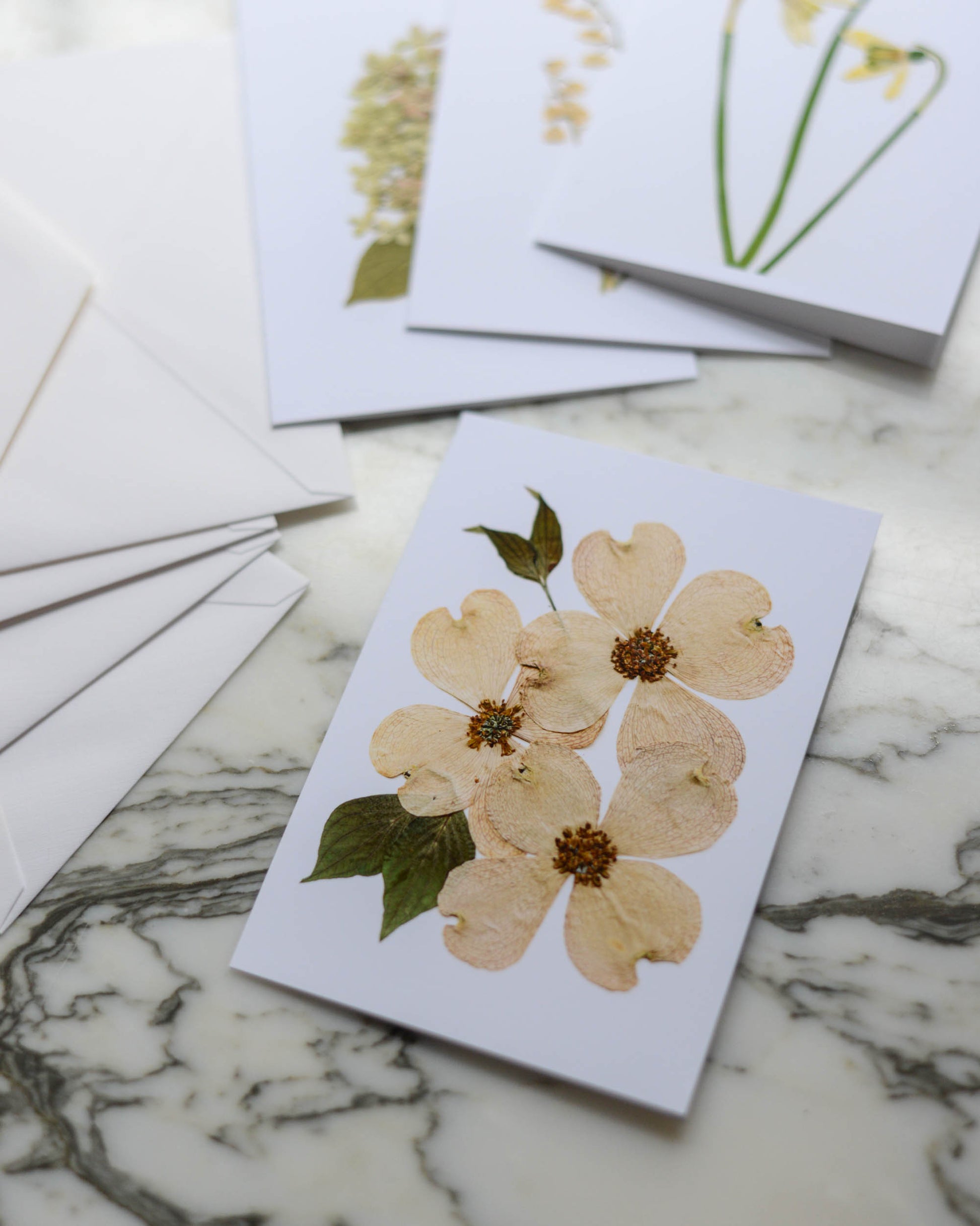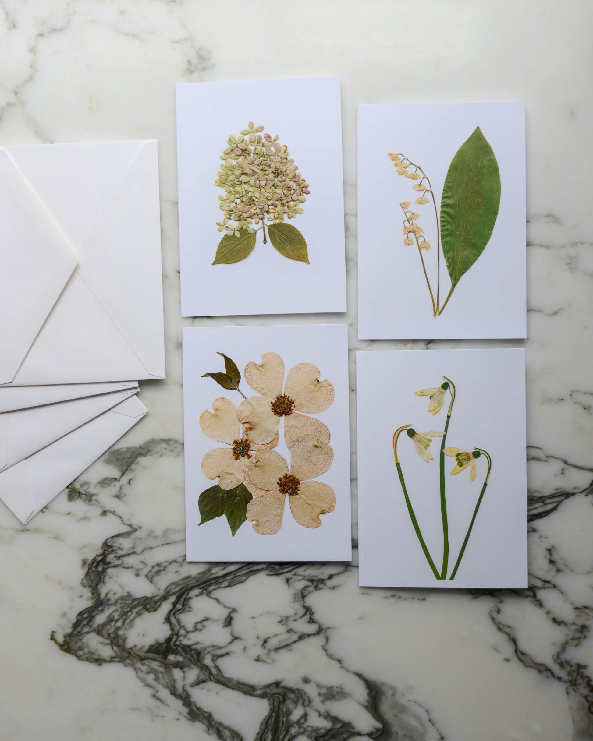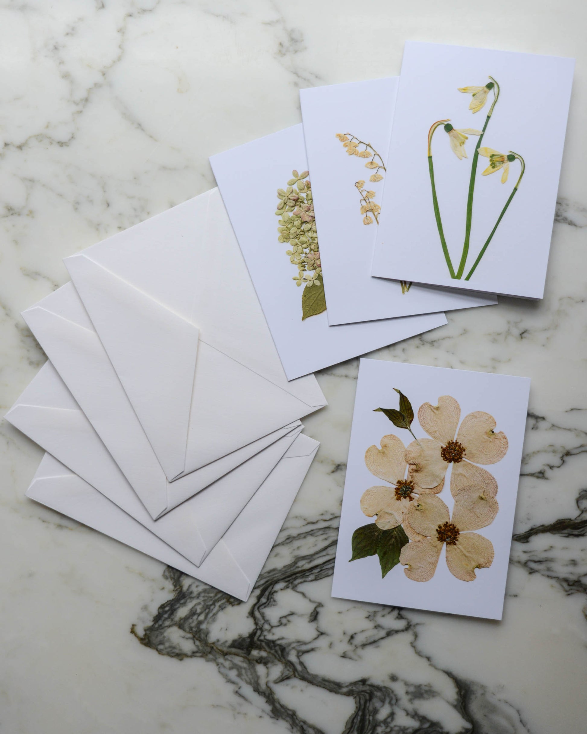 The original artwork was created using pressed flowers, many of which I grew myself and then gathered, pressed and designed especially for this format, then a high resolution scan was done to capture the lifelike detail in each one. The designs are printed on bright white 60lb cardstock and come with corresponding linen envelopes. They measure 3.5x5" and are blank inside, ready to be filled with your thank you note, birthday wish, or any other correspondence!