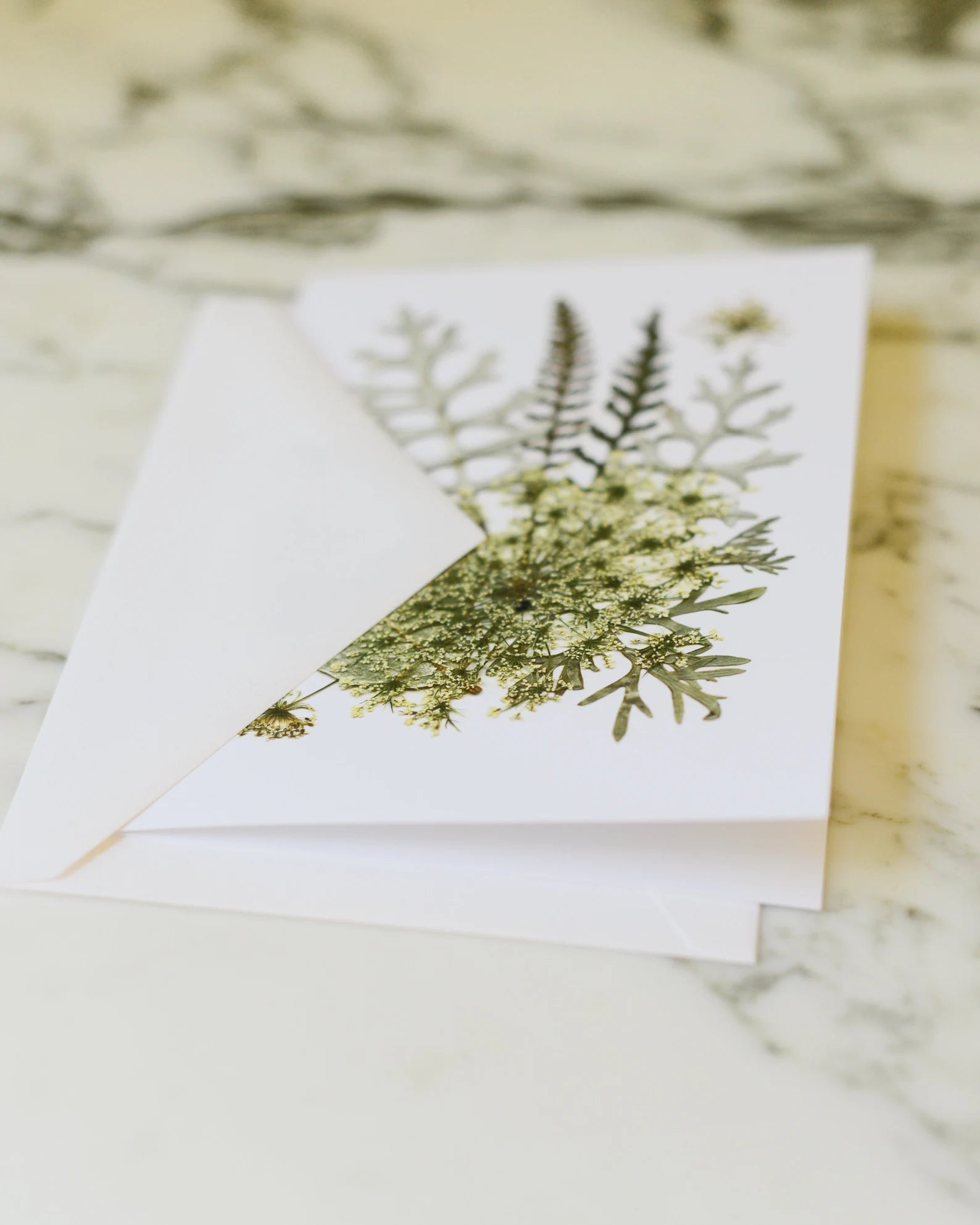 The original artwork was created using pressed flowers, many of which I grew myself and then gathered, pressed and designed especially for this format, then a high resolution scan was done to capture the lifelike detail in each one. The design is printed on bright white 60lb cardstock and comes with a corresponding linen envelope. It measures 4.5x6" and is blank inside, ready to be filled with your thank you note, birthday wish, or any other correspondence!